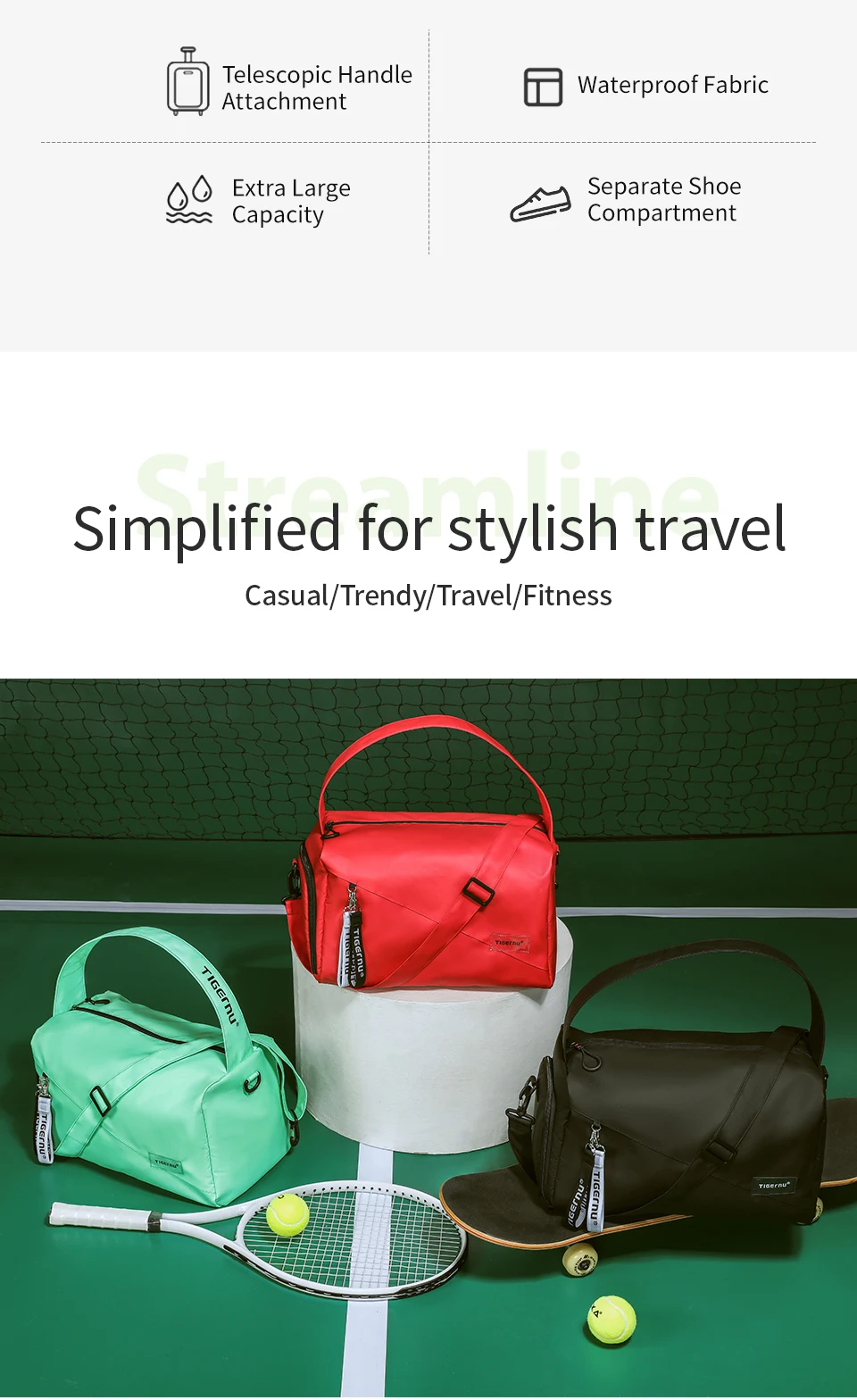 Water-Resistant Gym & Travel Duffel for Women