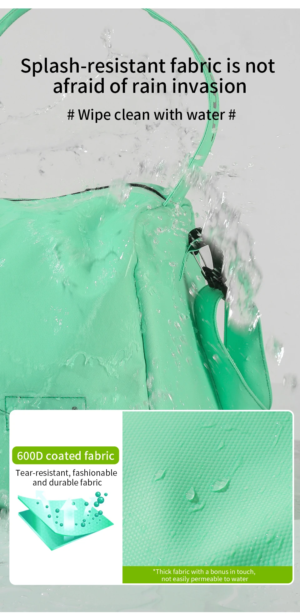1. Selected high-quality 600D coated fabric and Splash-resistant fabric is not afraid of rain invasion